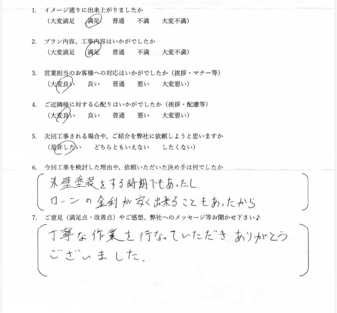 先日、工事を行なったお客様から、嬉しいお声をいただきました。外壁塗装の時期を迎えていたことに加え、...
