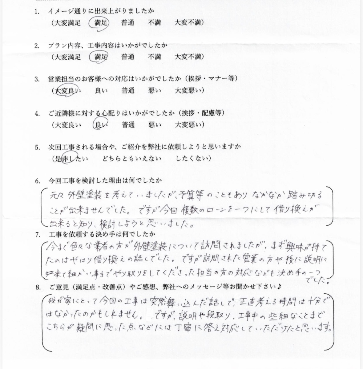 先日工事を行ったお客様から、嬉しいお言葉をいただきました。 以前から外壁塗装を考えておりまし...
