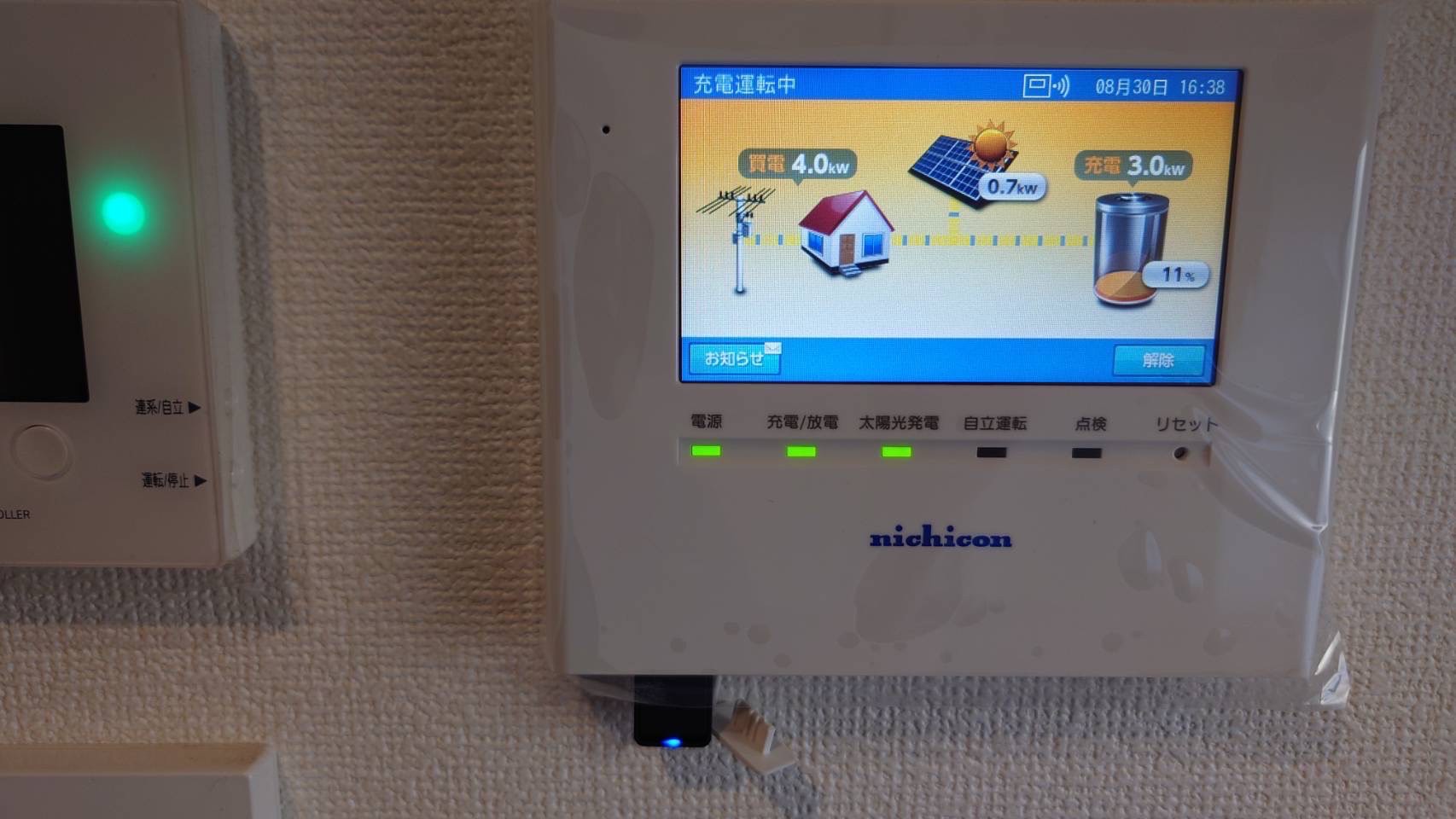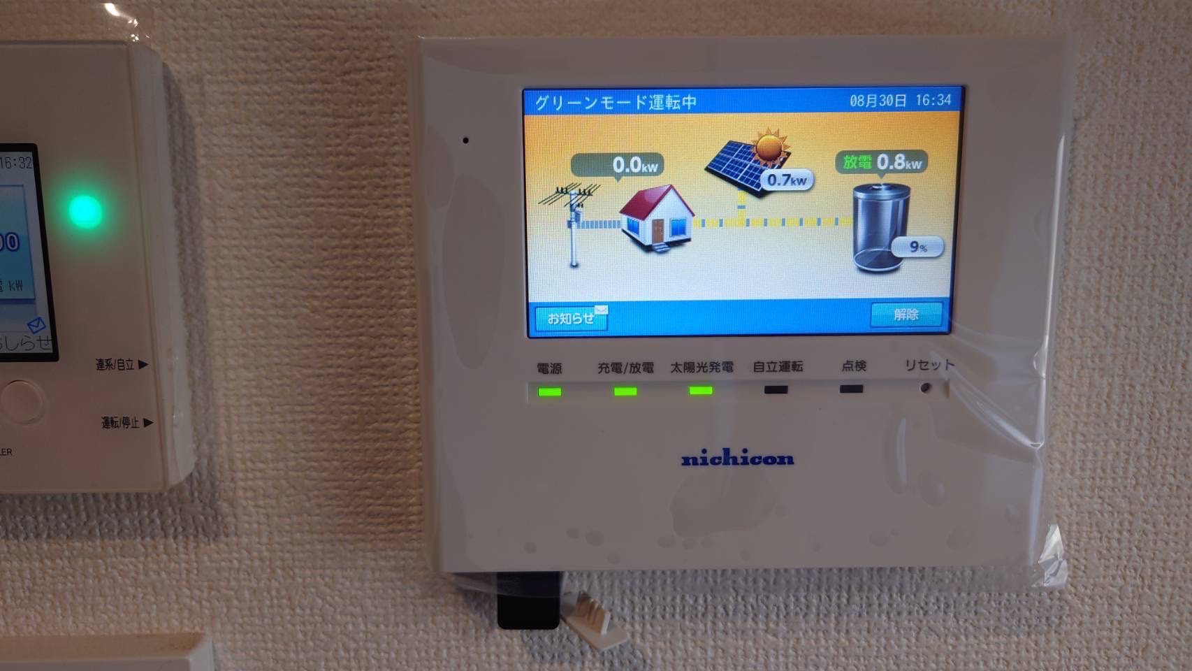 今回導入したこちらのモデルには、スマートフォンを使って蓄電池の残量や充放電の状態を確認できる「見守り機能」が搭載されています。