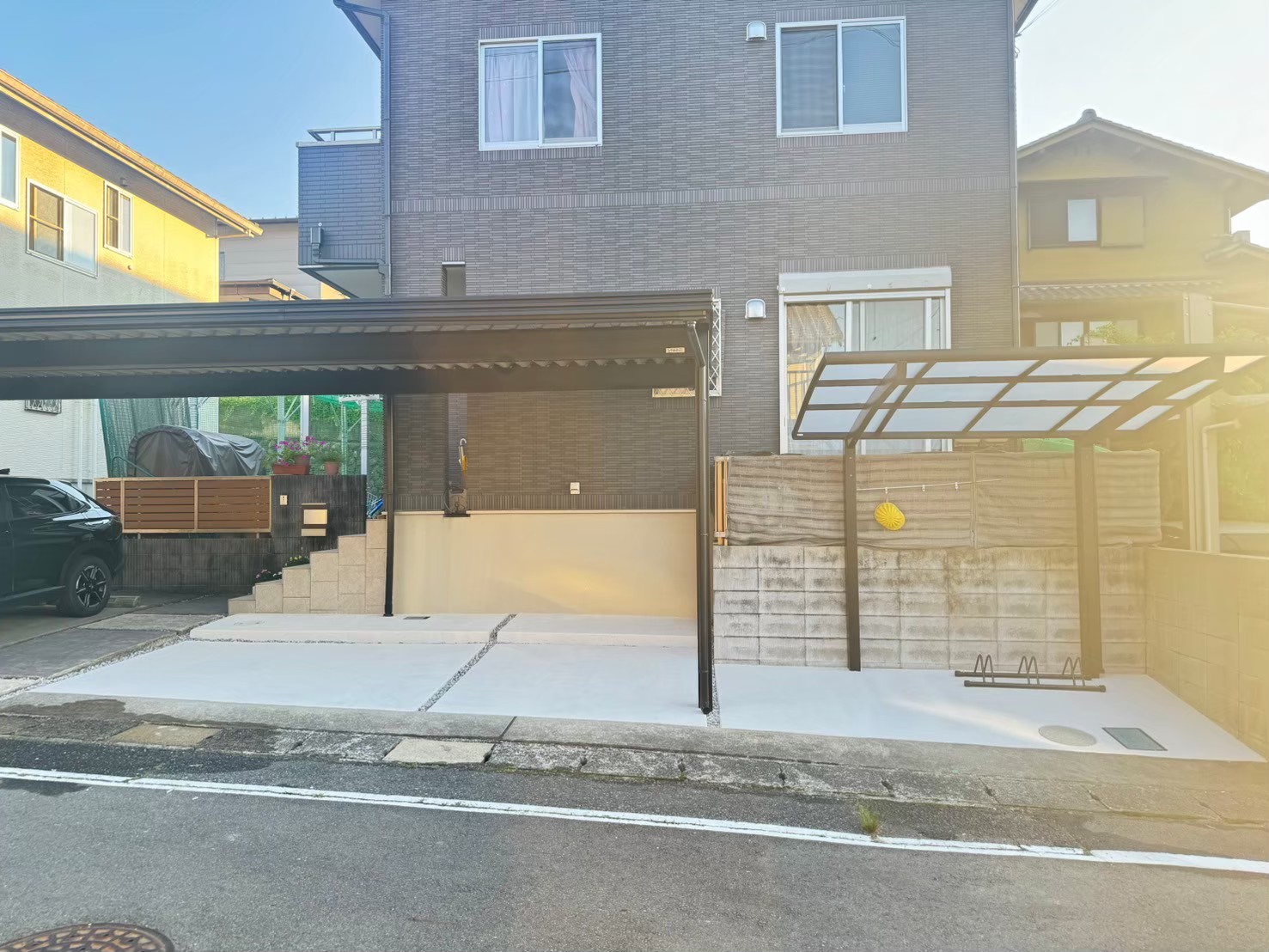 今回はサンアイ岡本のカーポートとLIXILのサイクルポート「ネスカ Rミニ」の設置工事を行いました。
