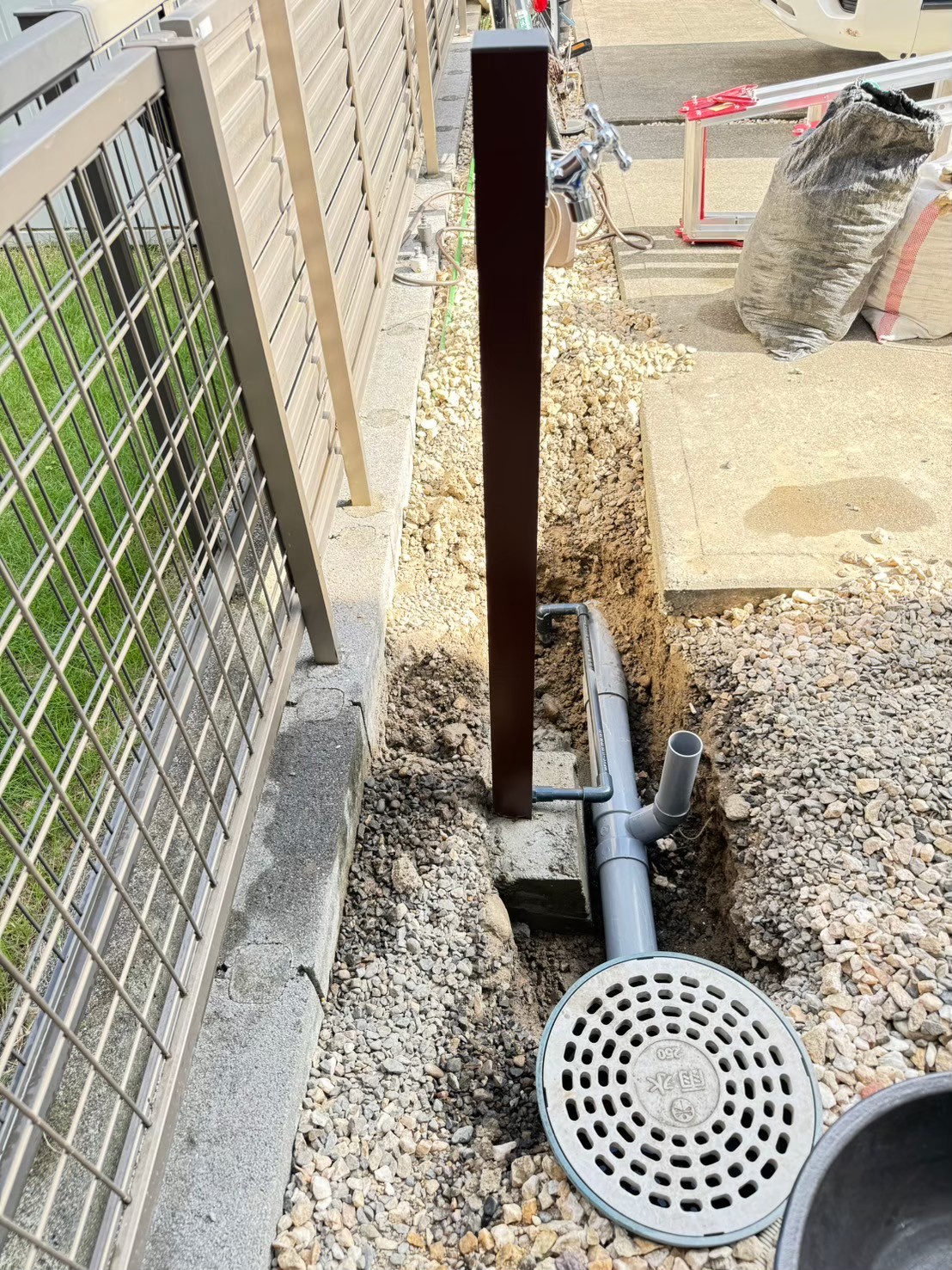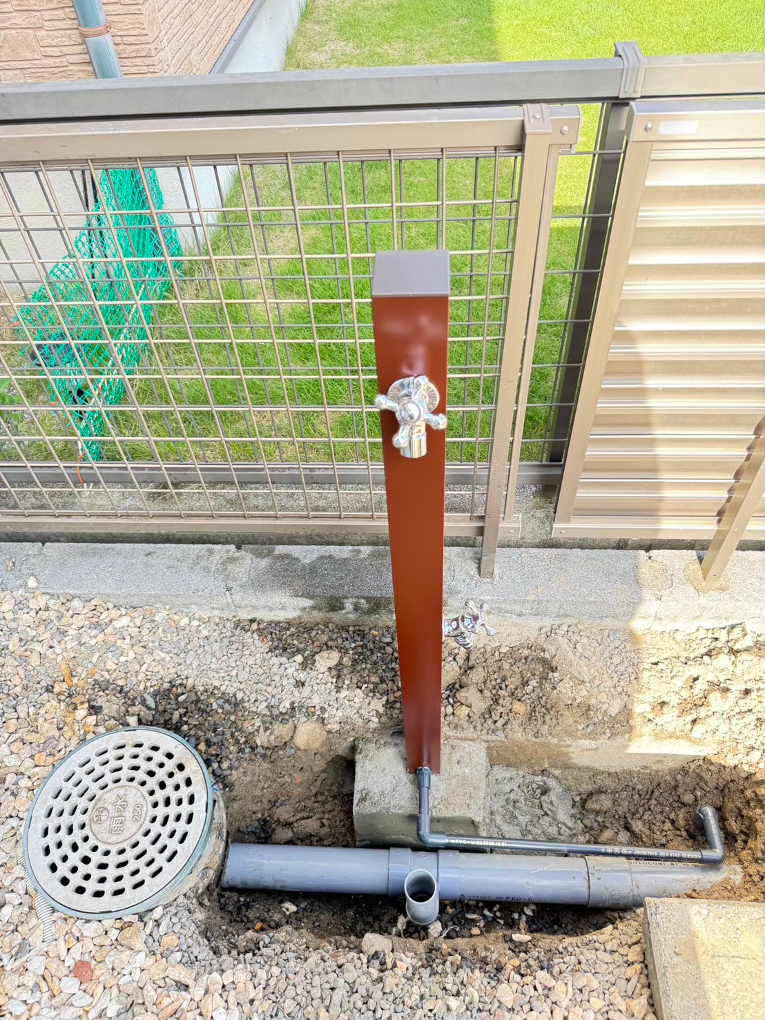 立水栓は、単なる蛇口の取り付けにとどまらず、排水までしっかりと設計・施工。