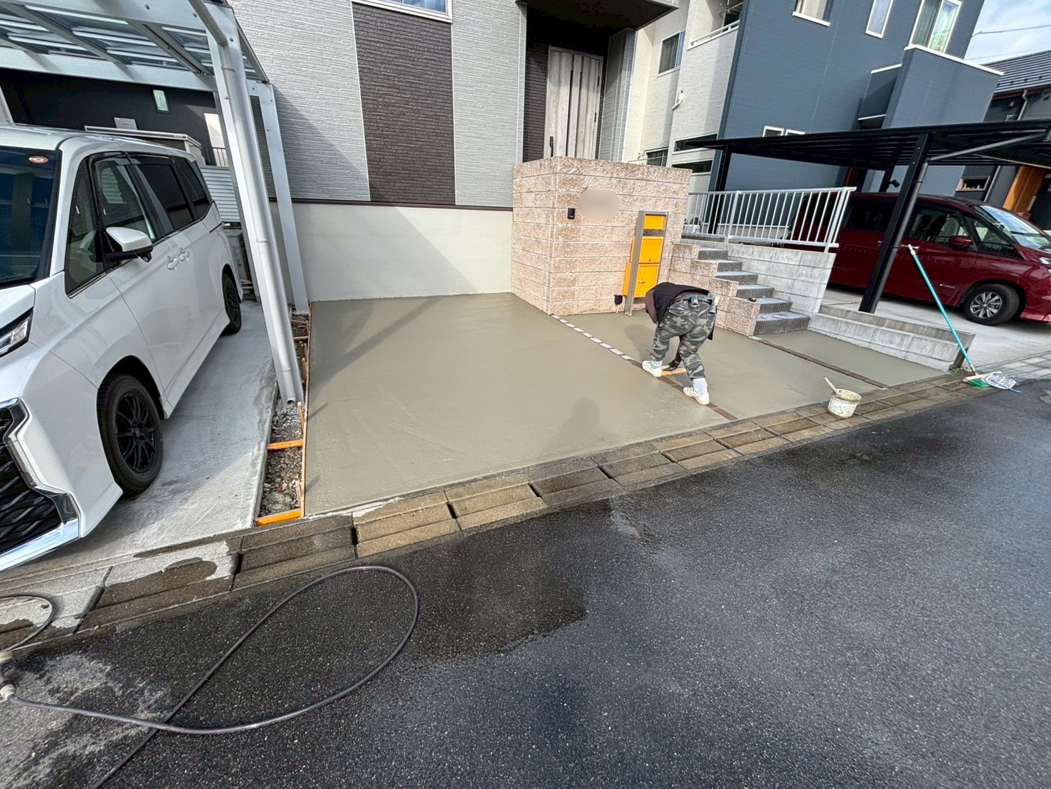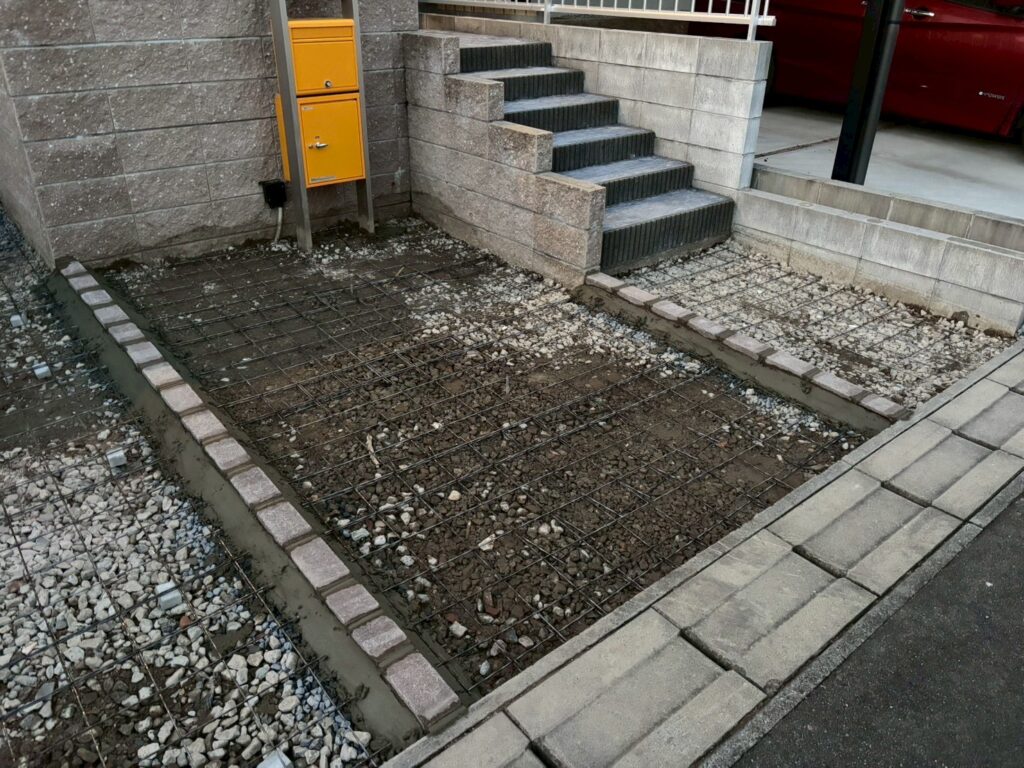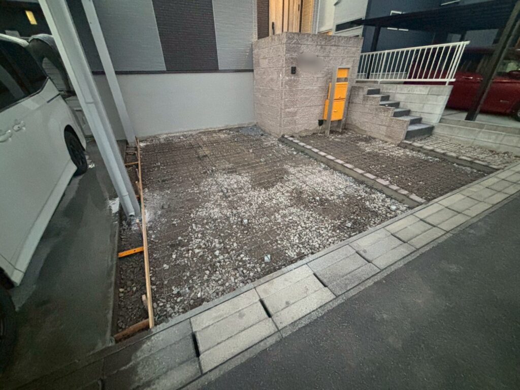 今回は、駐車場周りの土間コン工事を行いました。
