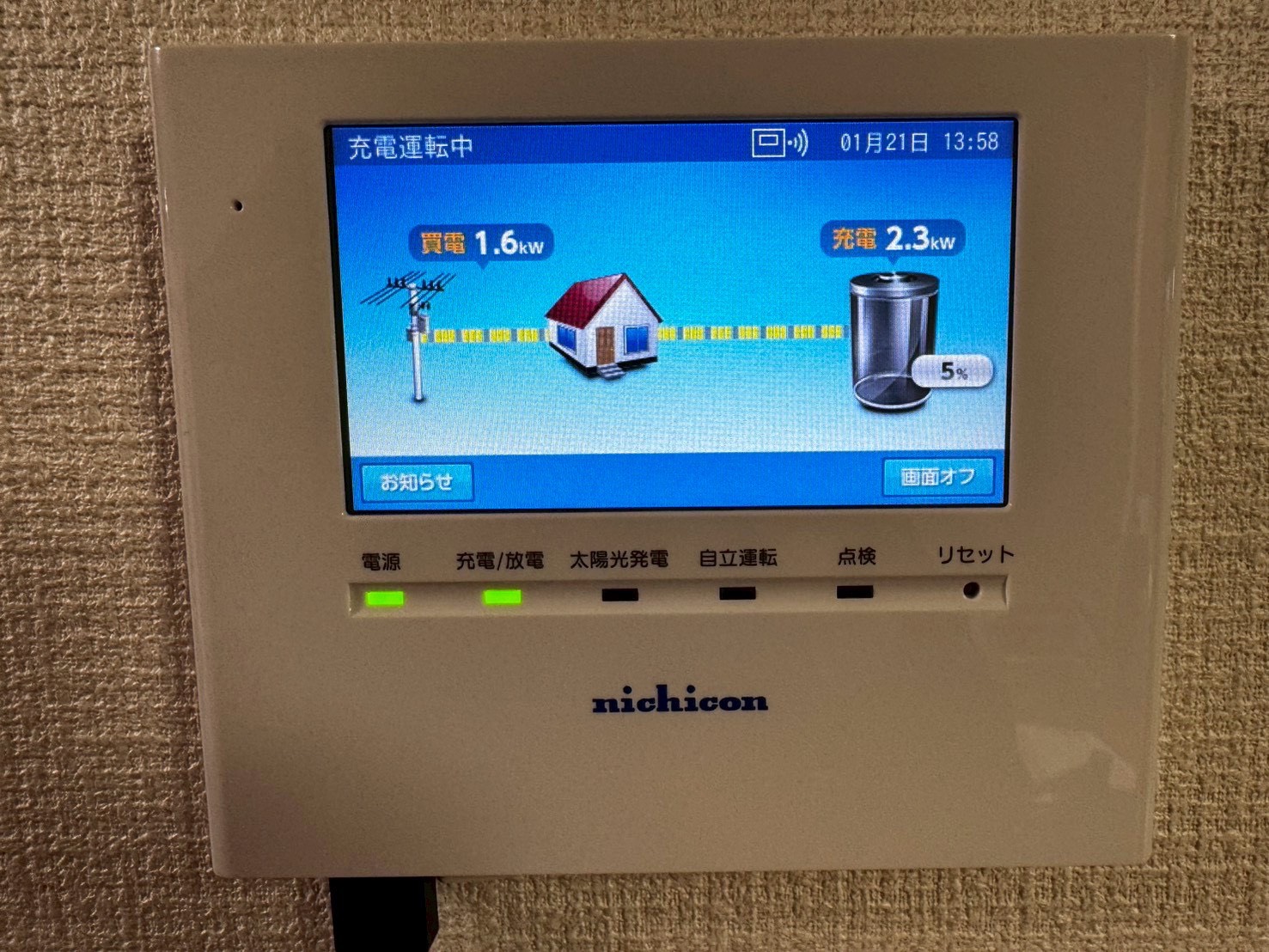 今回設置したのは、ニチコンの大容量の蓄電池です。